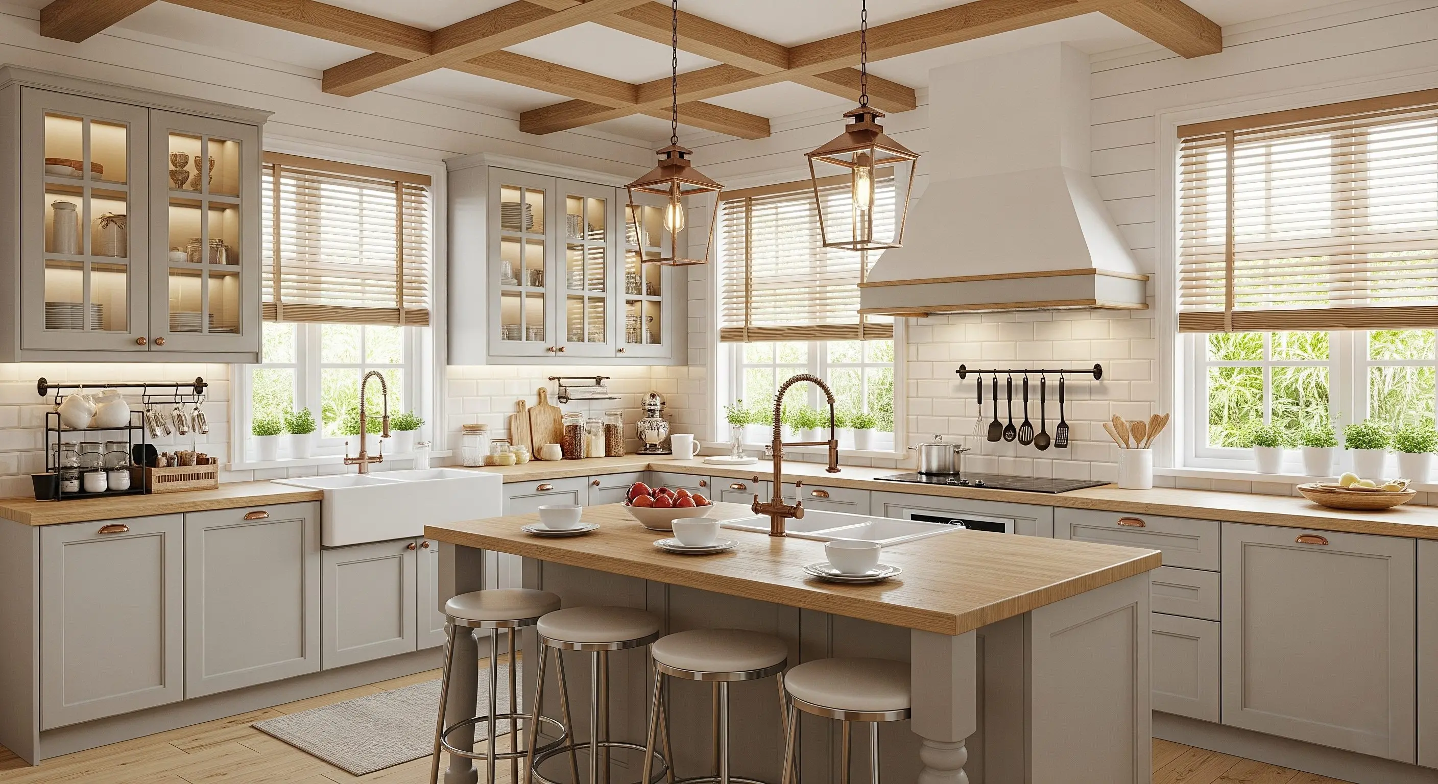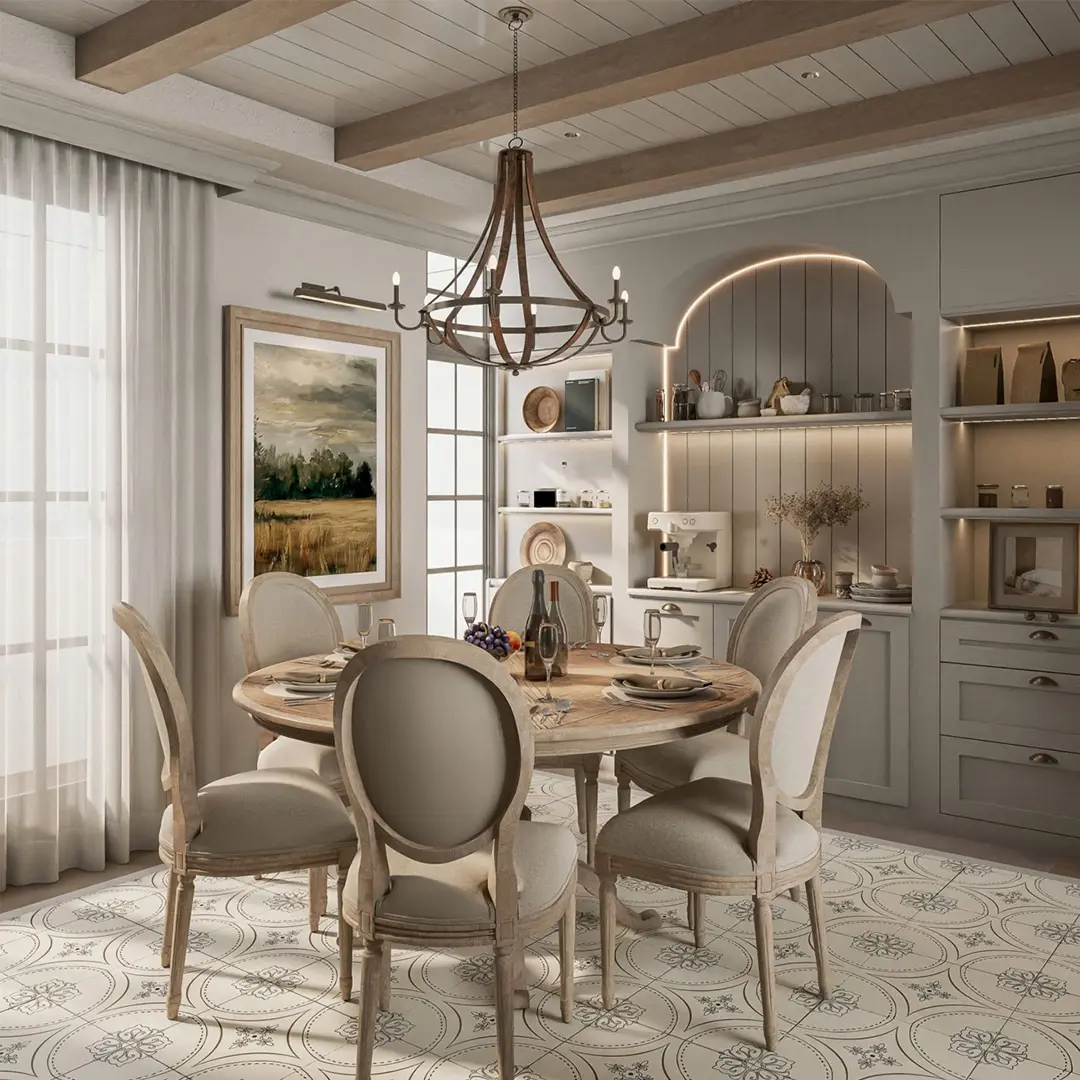 Nhà Modern Farmhouse pha trộn nét mộc mạc của trang trại truyền thống với sự tinh tế hiện đại. Không gian ấm cúng với gỗ tự nhiên, màu trung tính, và đường nét tối giản, tạo cảm giác thư thái và gần gũi thiên nhiên.